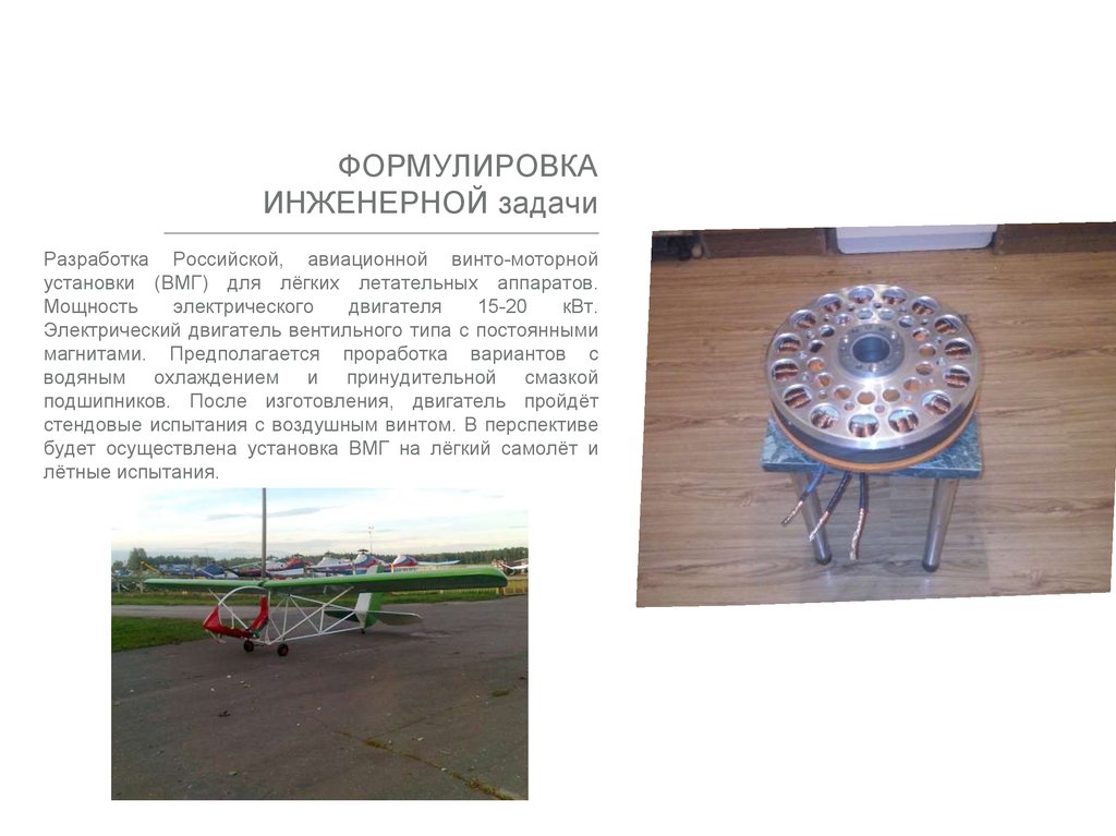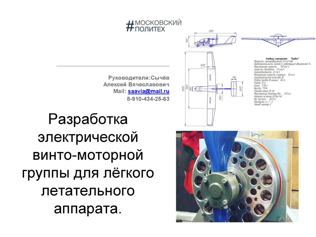 1. Разработка электрической винто-моторной группы для лёгкого летательного аппарата.