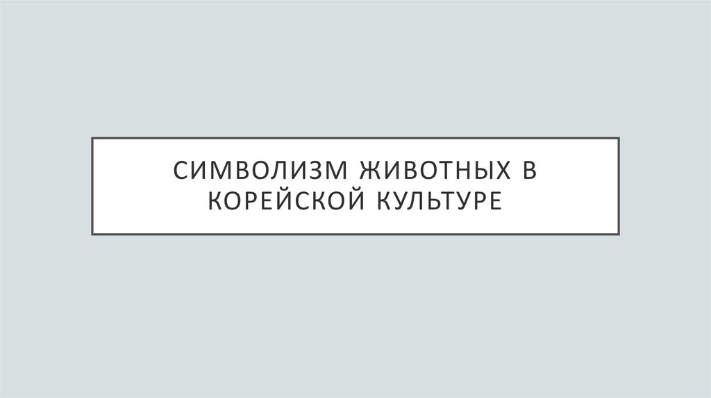 СИМВОЛИЗМ ЖИВОТНЫХ ВКОРЕЙСКОЙ КУЛЬТУРЕ