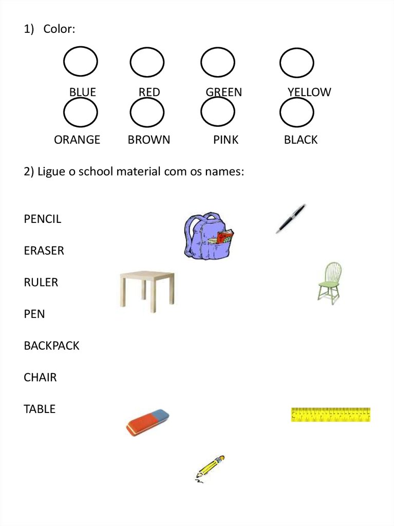 2) Ligue o school material com os names: