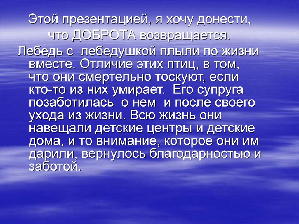 Этой презентацией, я хочу донести,что ДОБРОТА возвращается.