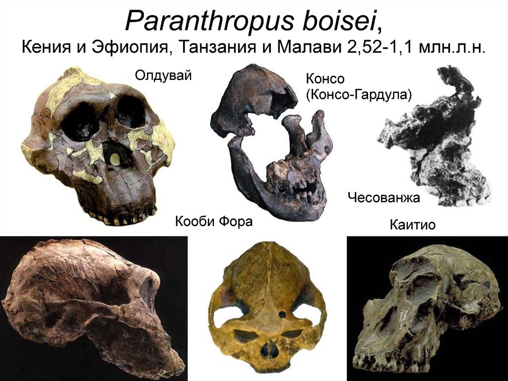 Paranthropus boisei,Кения и Эфиопия, Танзания и Малави 2,52-1,1 млн.л.н.