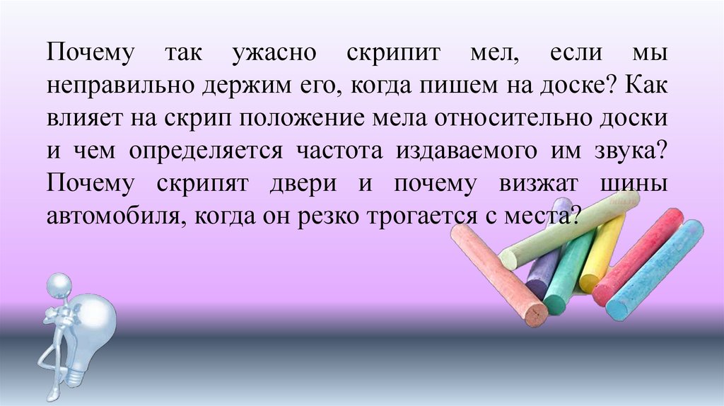 Почему так ужасно скрипит мел, если мынеправильно держим его, когда пишем на доске? Как