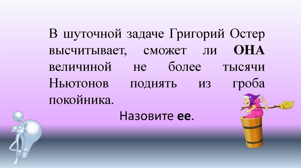 В шуточной задаче Григорий Остервысчитывает, сможет ли ОНА