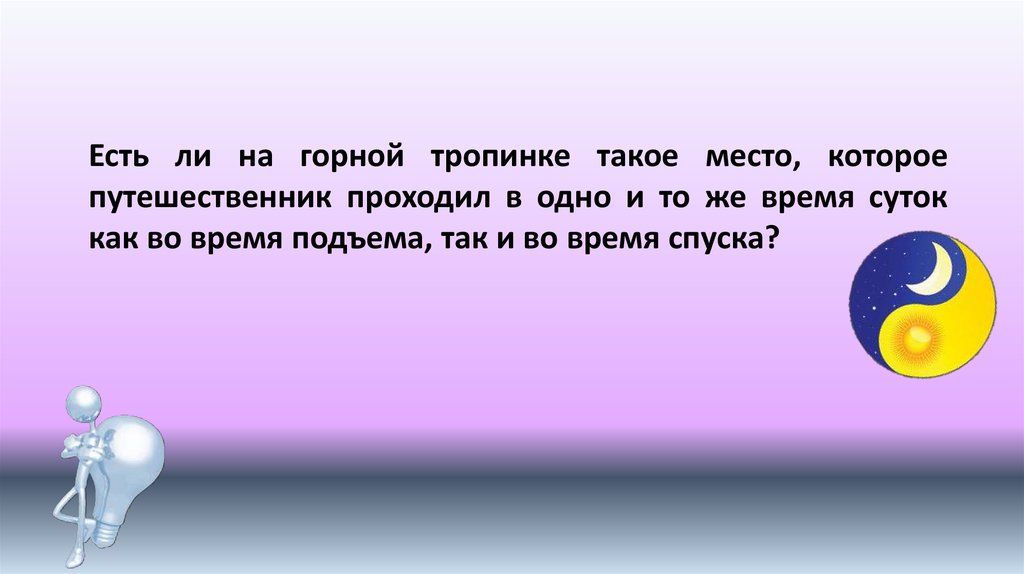Есть ли на горной тропинке такое место, котороепутешественник проходил в одно и то же время суток
