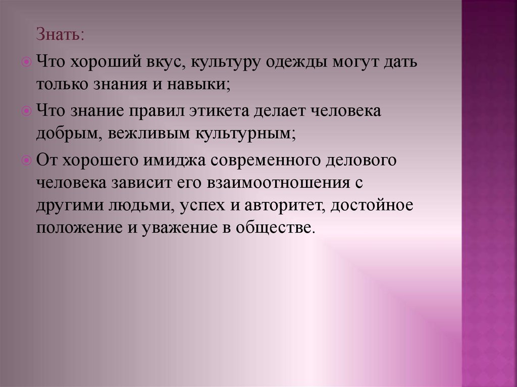 Знать:Что хороший вкус, культуру одежды могут дать