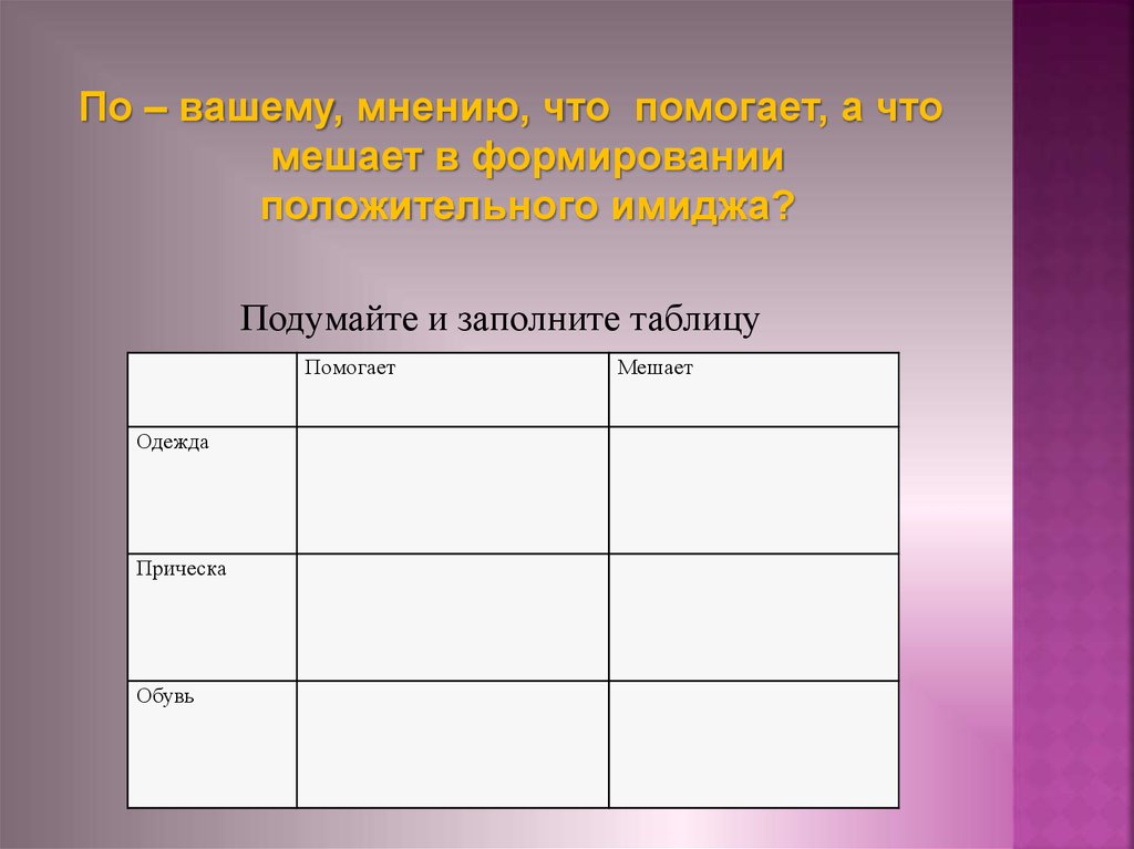 По окончании занятий по имиджу мы должныИметь представление как :