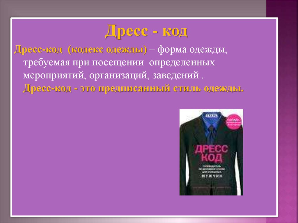 Дресс - кодДресс-код (кодекс одежды) – форма одежды,