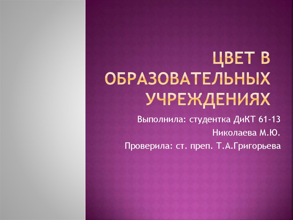 Выполнила: студентка ДиКТ 61-13Николаева М.Ю.