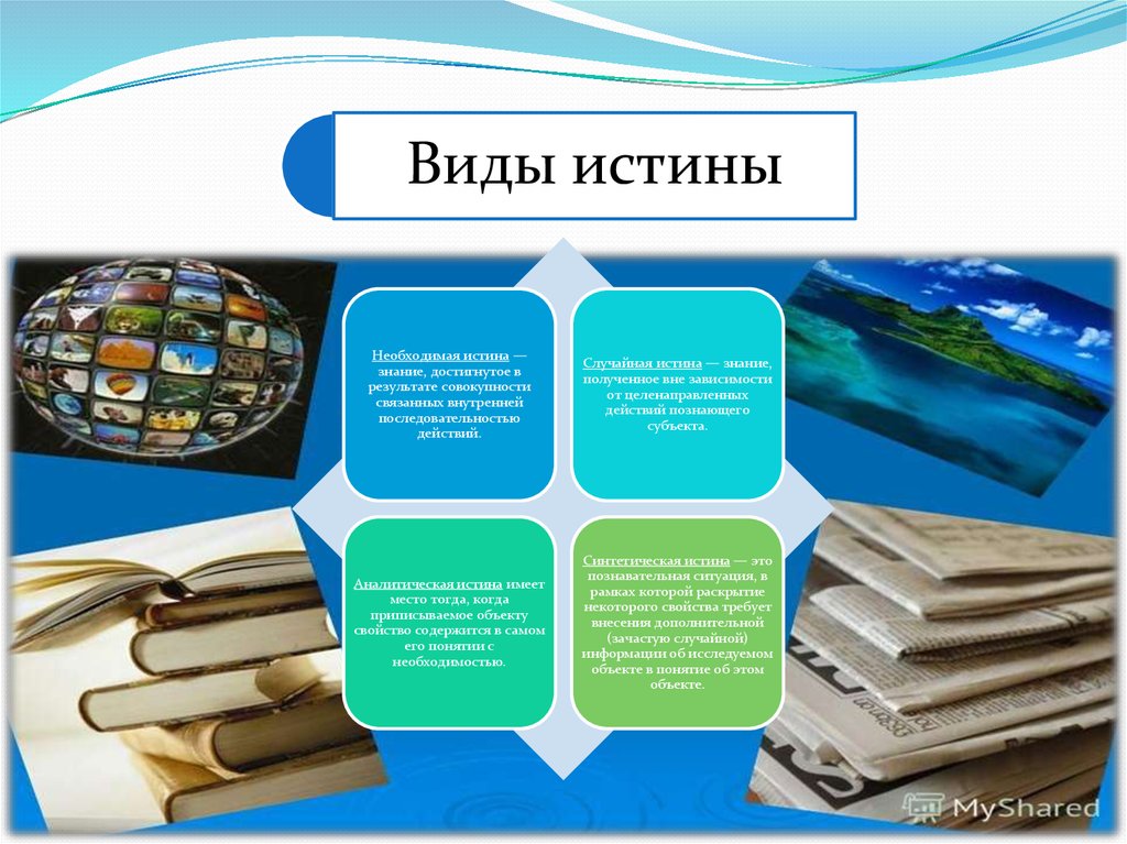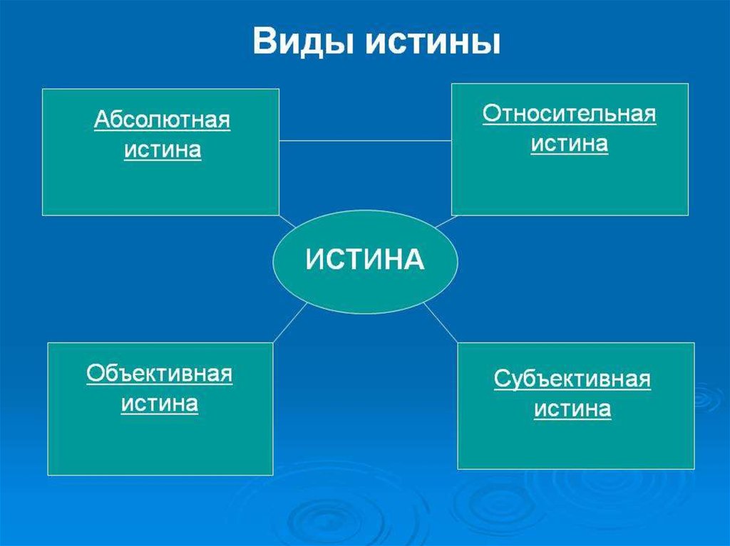 Виды истиныАбсолютная истина — источник всего, то, из чего все изошло. Абсолютная истина не есть истина как