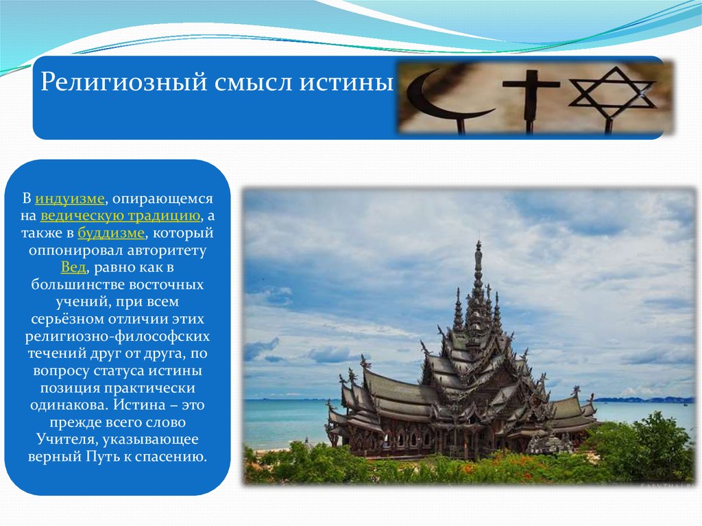 истину. В некоторых религиях (в частности, в христианстве) эта проблема преодолевается тем, что
