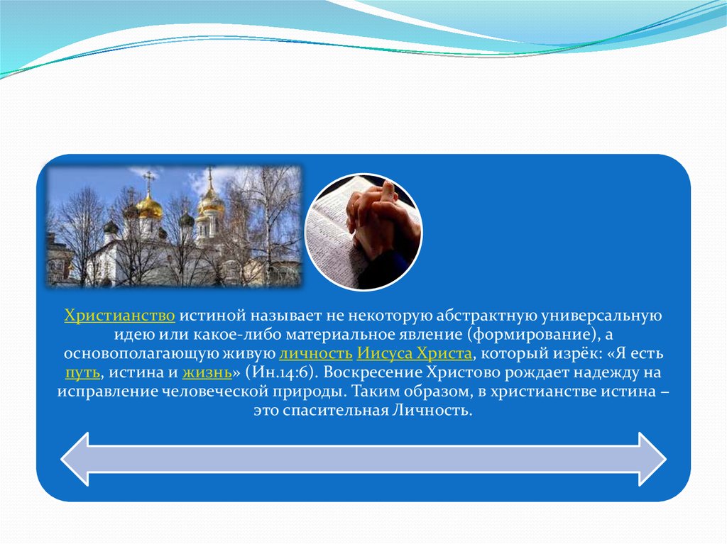 Христианство истиной называет не некоторую абстрактную универсальнуюидею или какое-либо материальное явление (формирование), а