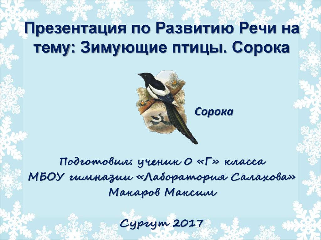 1. Презентация по Развитию Речи на тему: Зимующие птицы. Сорока