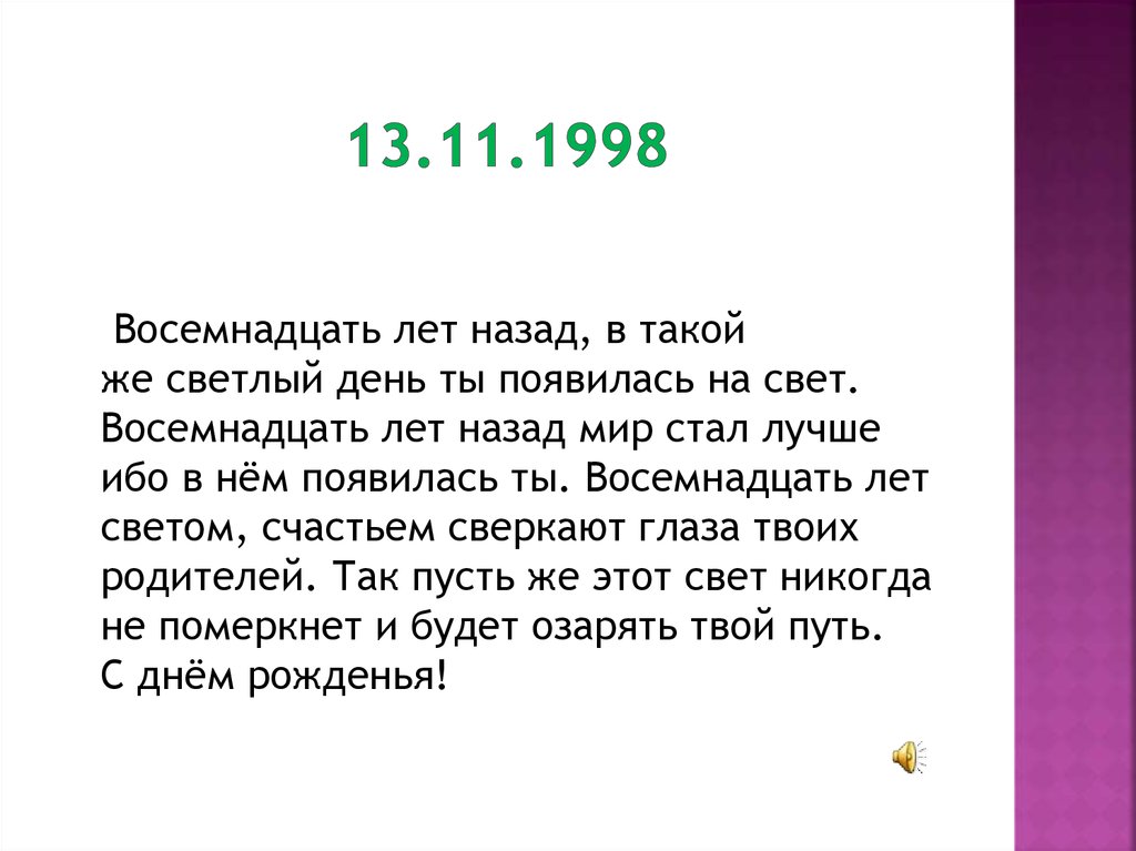Восемнадцать лет назад, в такойже светлый день ты появилась на свет.