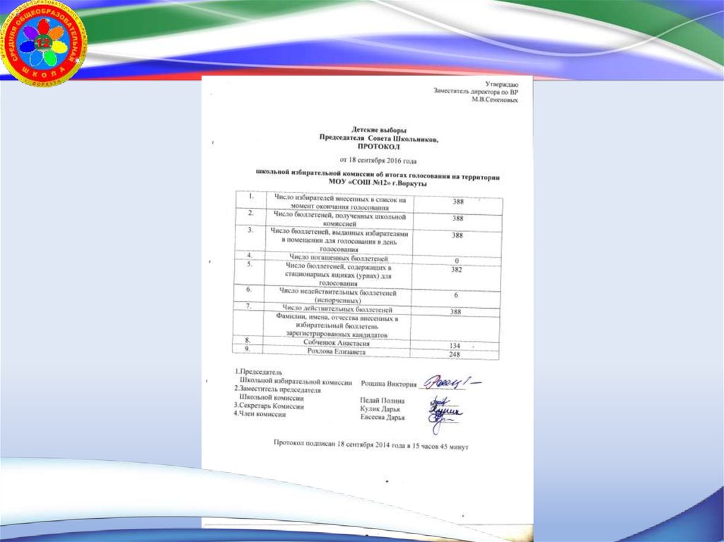 Председатель Совета школьников МОУ «СОШ №12» г. Воркуты