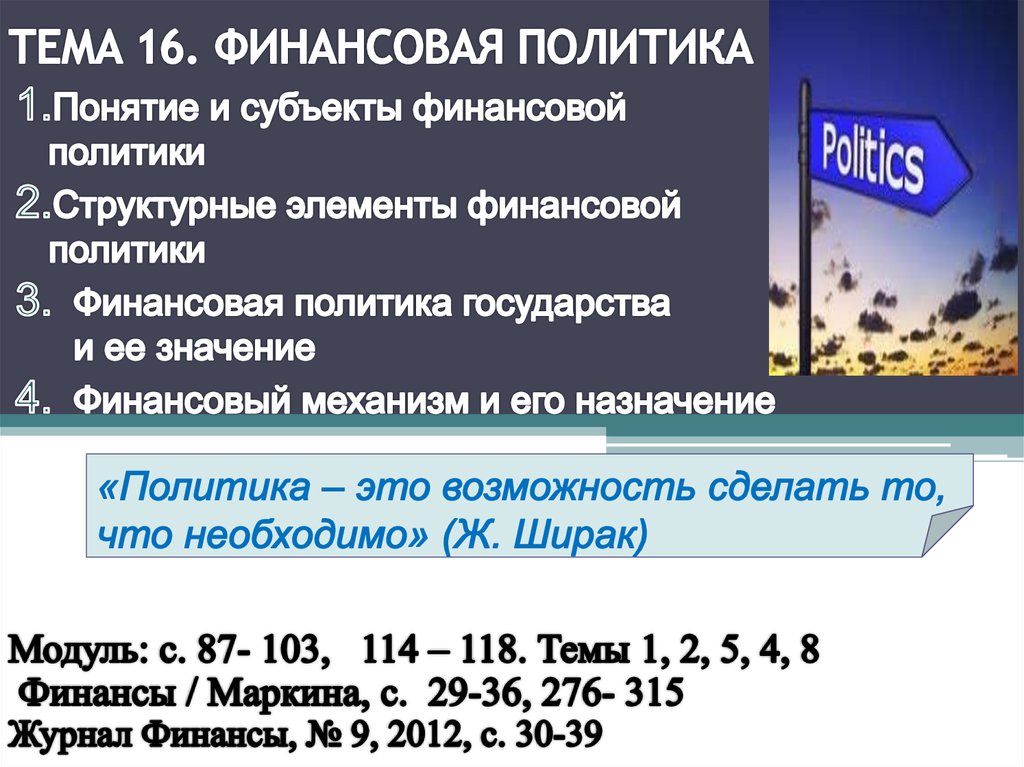 1. ТЕМА 16. ФИНАНСОВАЯ ПОЛИТИКА