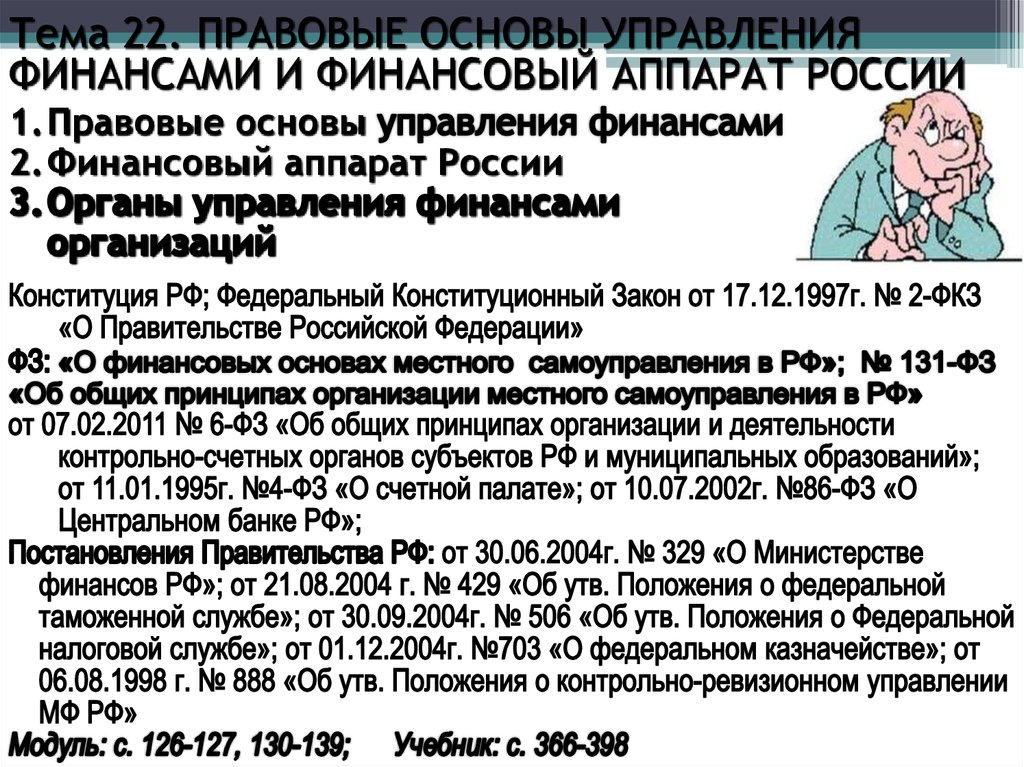 Правовые основы управления финансами и финансовый аппарат России. (Тема 22)