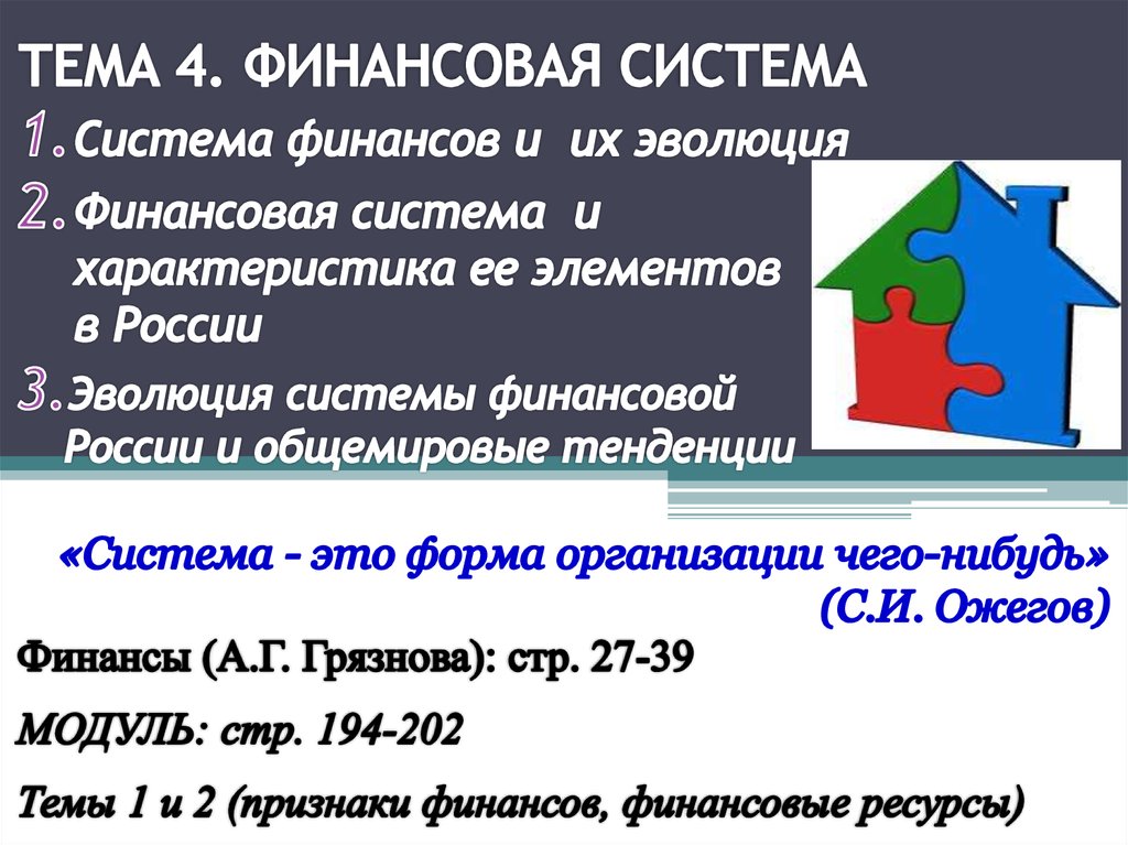 1. ТЕМА 4. ФИНАНСОВАЯ СИСТЕМА