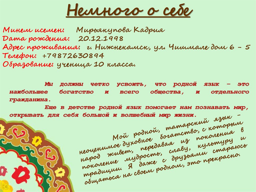главная составляющая нашей жизни. Мне посчастливилось родиться в татарской