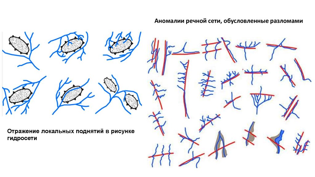 Аномалии речной сети, обусловленные разломамиОтражение локальных поднятий в рисунке