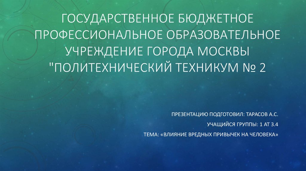 ТЕМА: «ВЛИЯНИЕ ВРЕДНЫХ ПРИВЫЧЕК НА ЧЕЛОВЕКА»