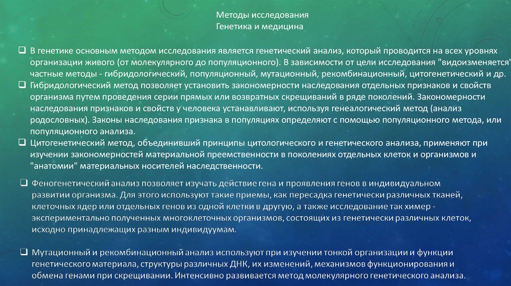 Методы исследованияГенетика и медицина