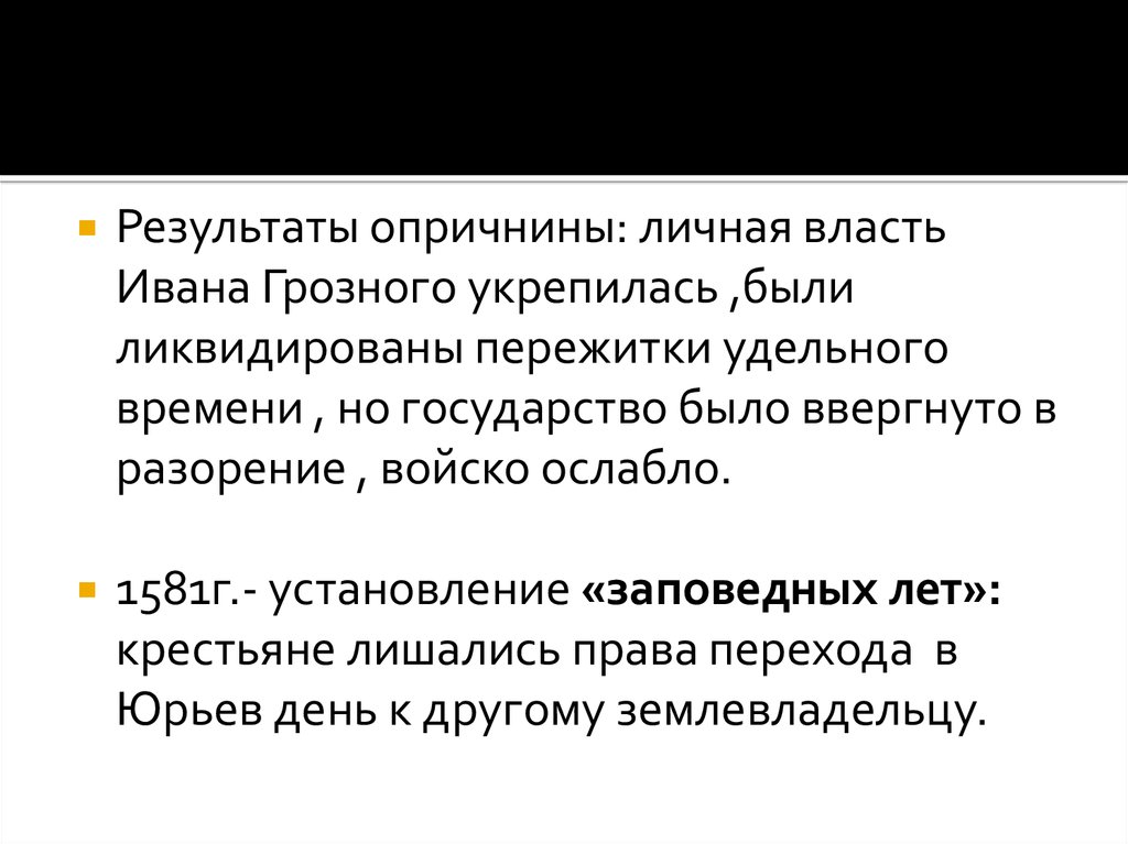 Результаты опричнины: личная властьИвана Грозного укрепилась ,были