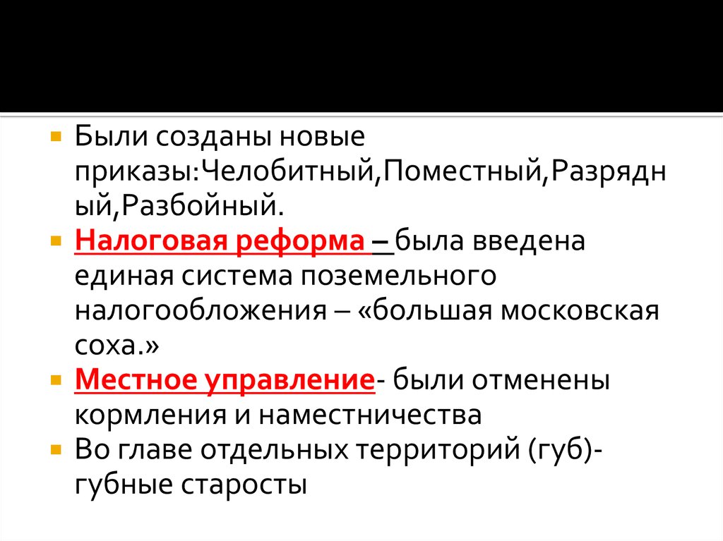 Были созданы новыеприказы:Челобитный,Поместный,Разрядн
