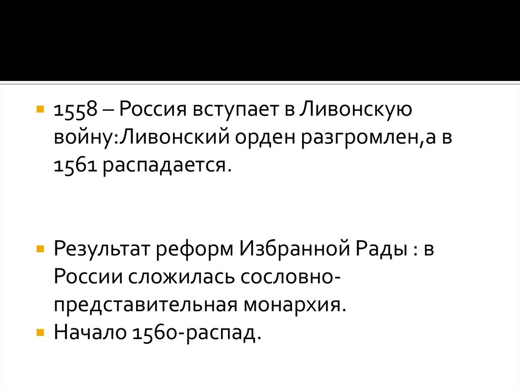 1558 – Россия вступает в Ливонскуювойну:Ливонский орден разгромлен,а в