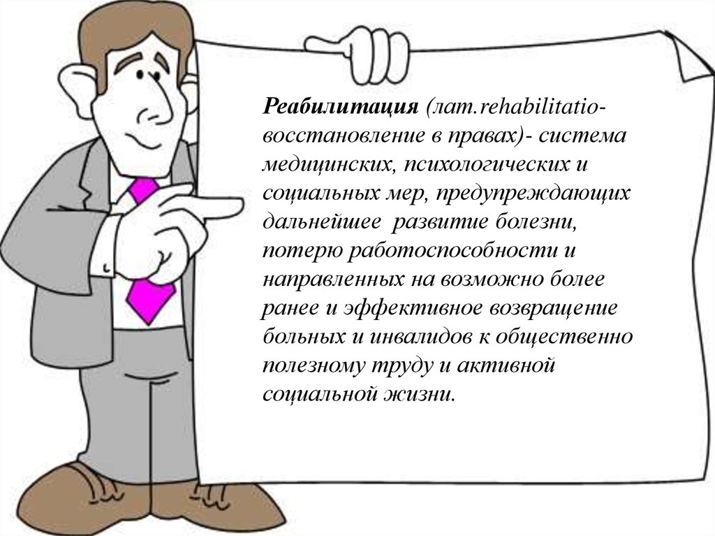 Реабилитация (лат.rehabilitatioвосстановление в правах)- системамедицинских, психологических и