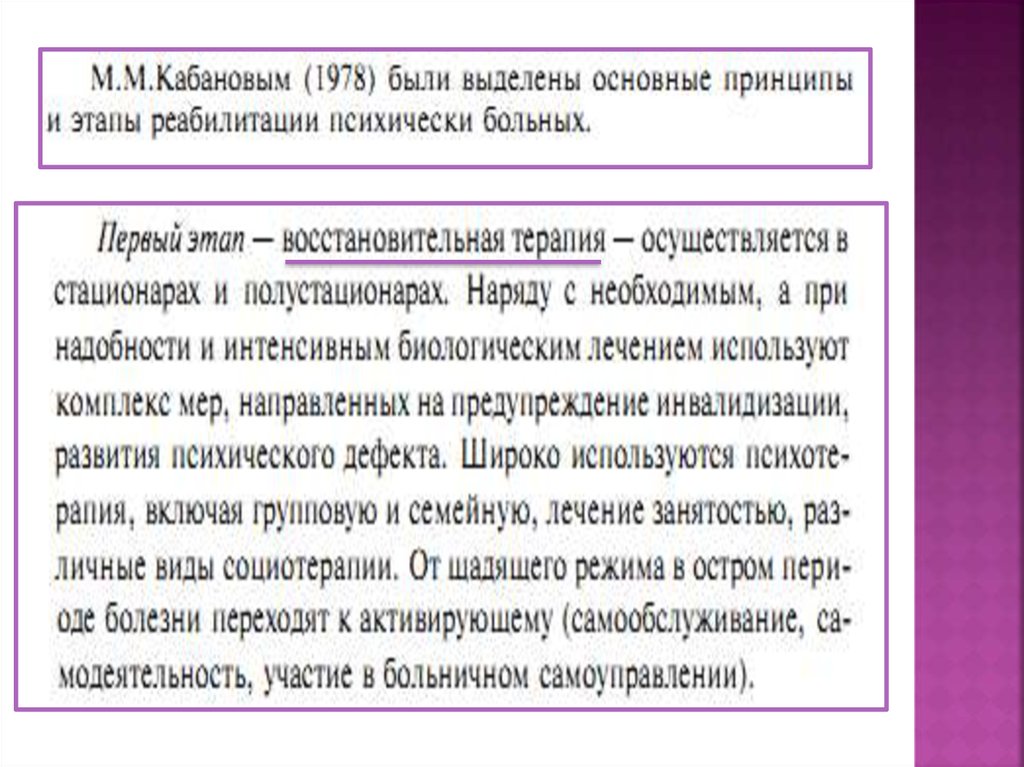 Принцип ступенчатости включает поэтапныйпереход от одних реабилитационных мер к