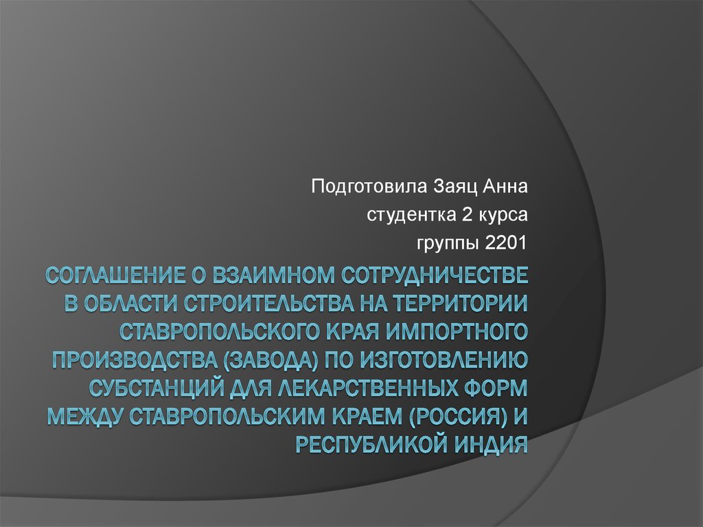 1. Соглашение о взаимном сотрудничестве в области строительства на территории Ставропольского края импортного производства