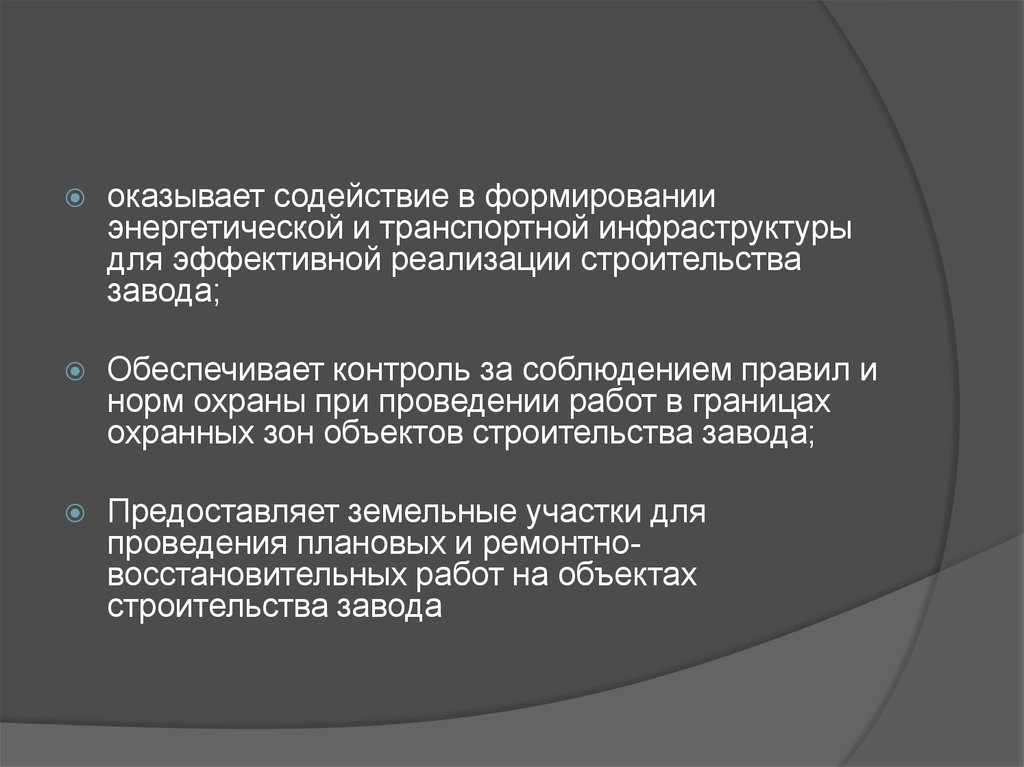 оказывает содействие в формированииэнергетической и транспортной инфраструктуры