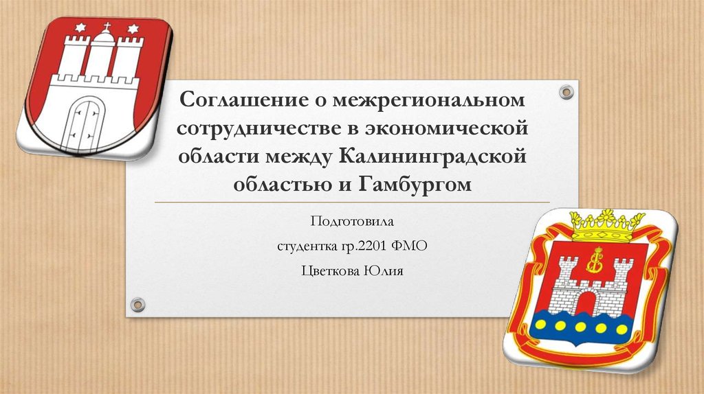 1. Соглашение о межрегиональном сотрудничестве в экономической области между Калининградской областью и Гамбургом