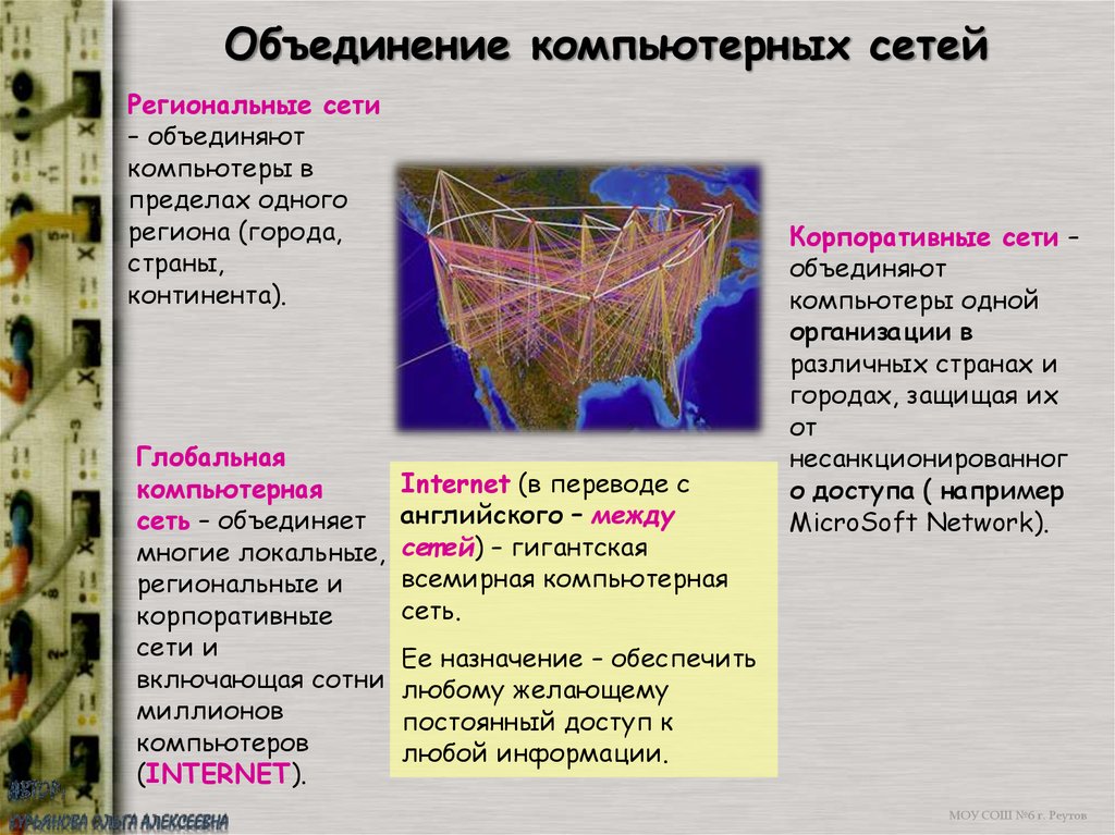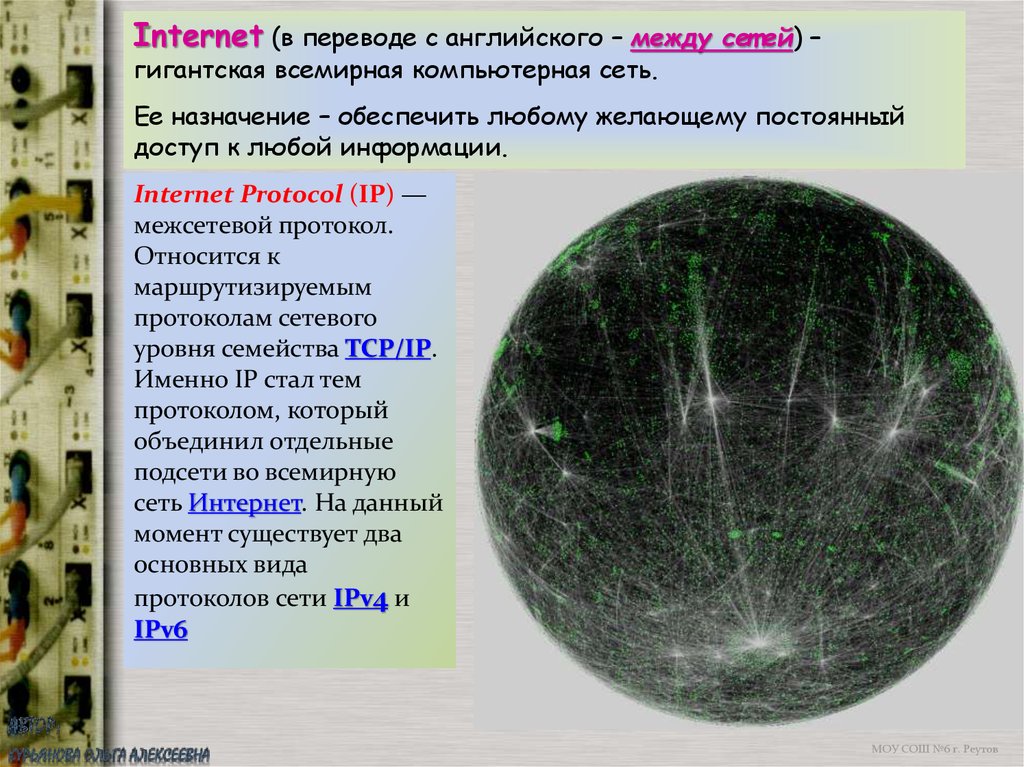 Internet (в переводе с английского – между сет ей) –гигантская всемирная компьютерная сеть.