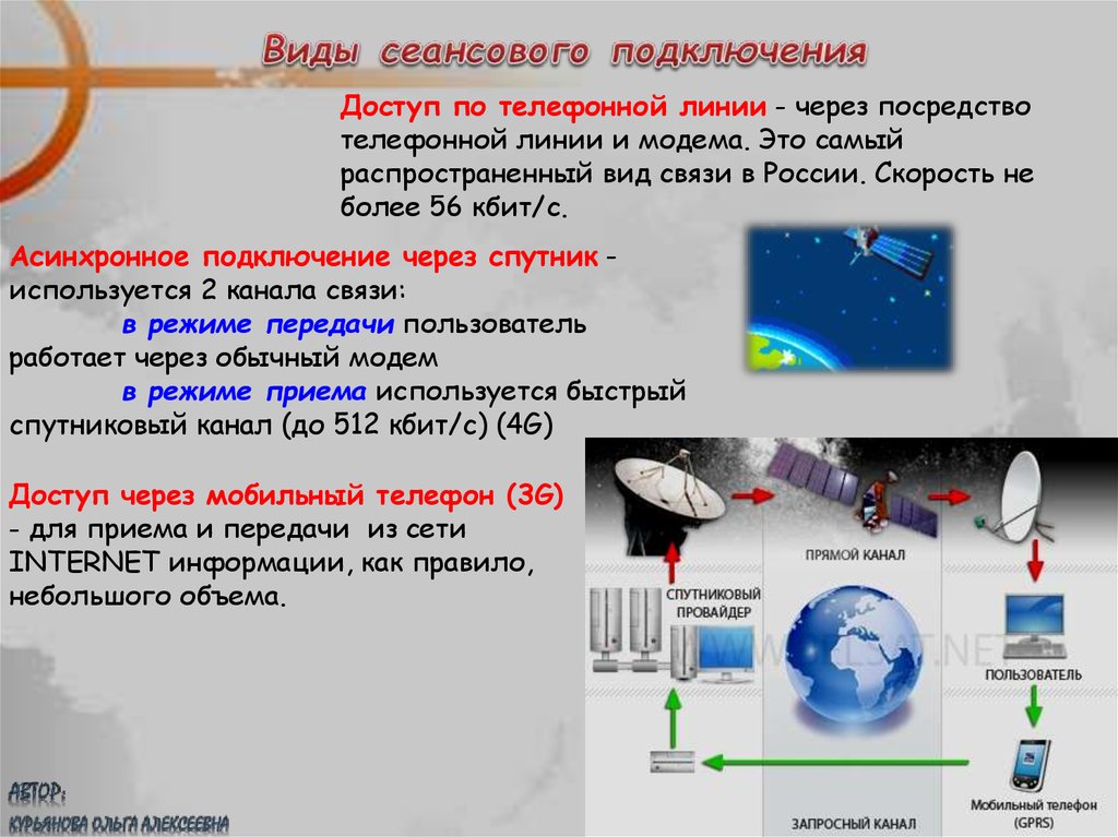 Доступ по телефонной линии - через посредствотелефонной линии и модема. Это самый