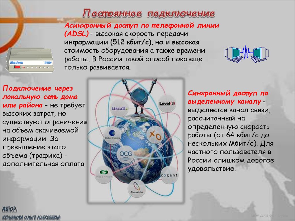Асинхронный дост уп по т елефонной линии(ADSL) - высокая скорость передачи