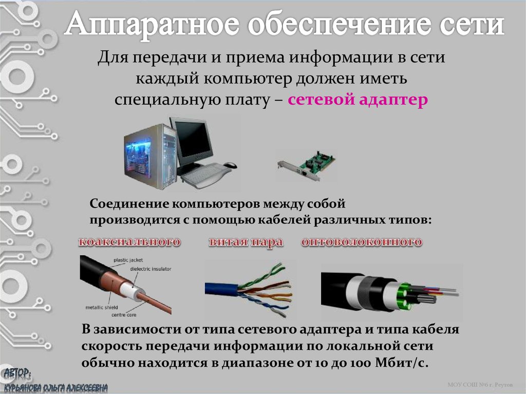 Для передачи и приема информации в сетикаждый компьютер должен иметь
