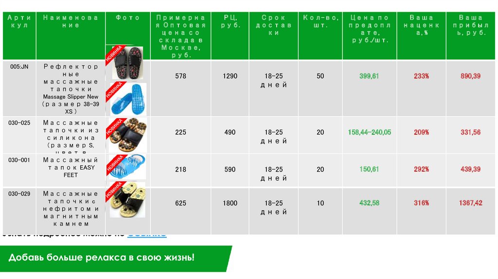 6. 030-029 Массажные тапочки c нефритом и магнитным камнем