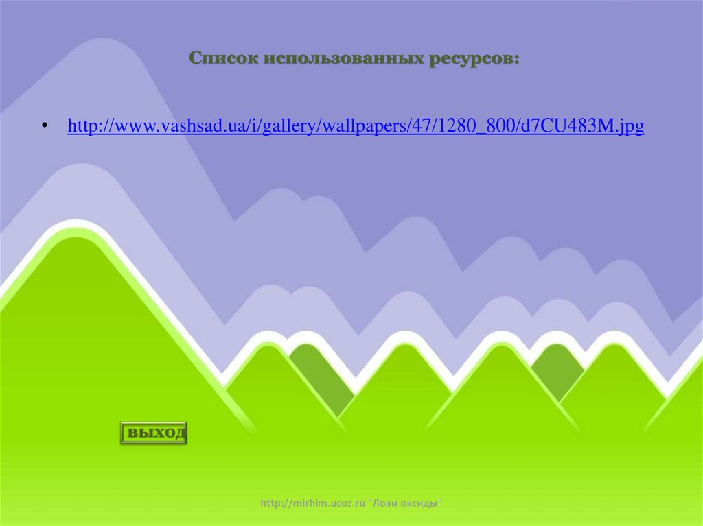 Список использованных ресурсов:• http://www.vashsad.ua/i/gallery/wallpapers/47/1280_800/d7CU483M.jpg