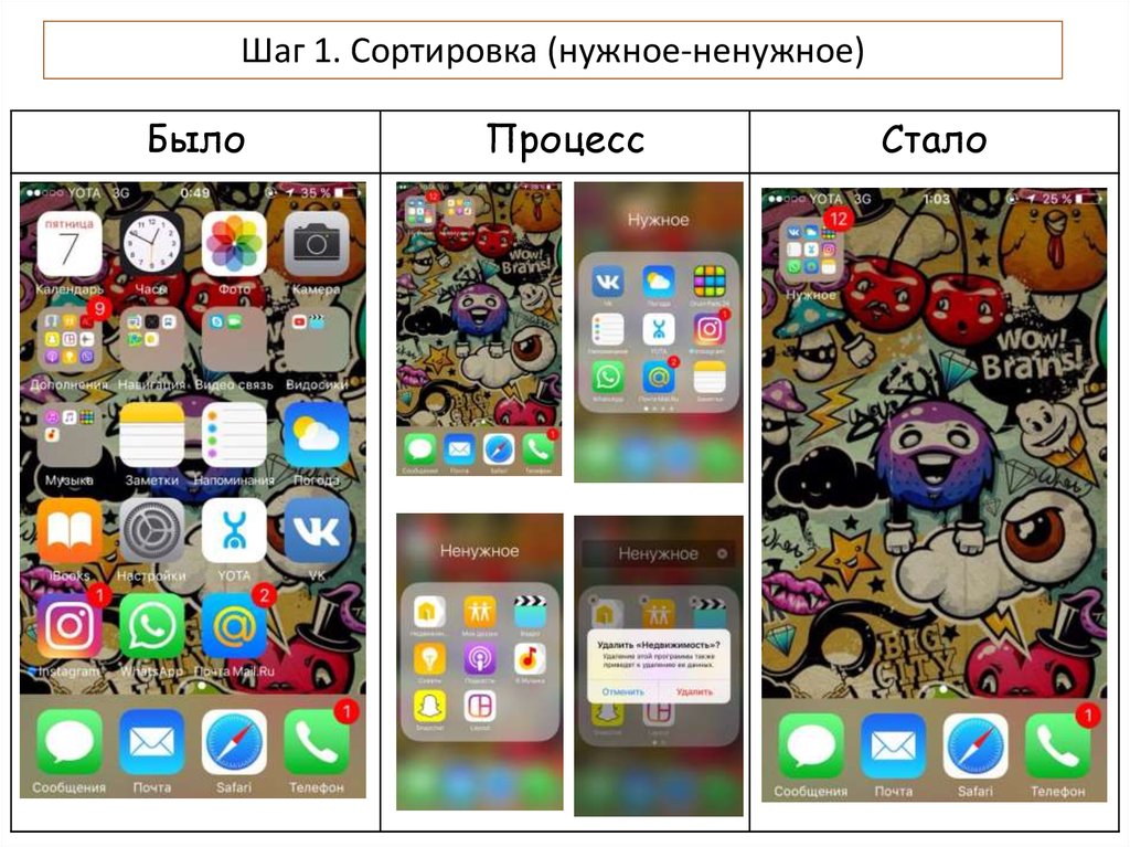 Шаг 1. Сортировка (нужное-ненужное)Было