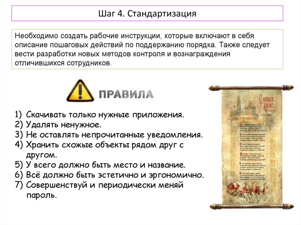 Шаг 4. СтандартизацияНеобходимо создать рабочие инструкции, которые включают в себя
