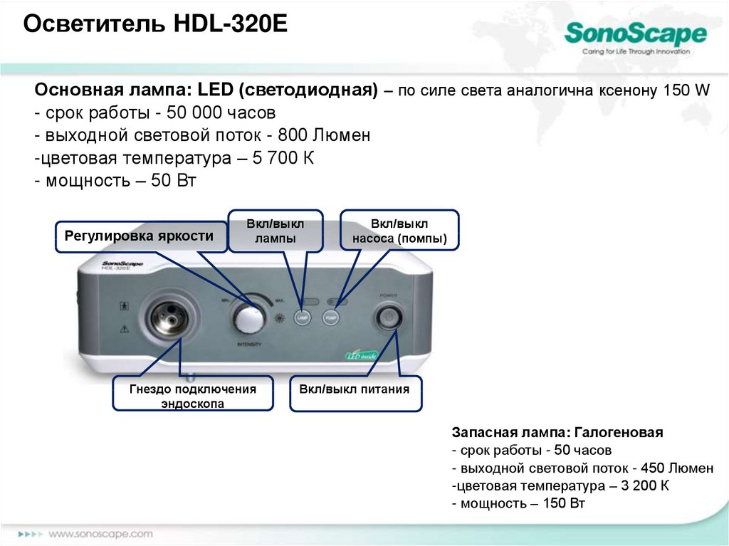 Осветитель HDL-320EОсновная лампа: LED (светодиодная) – по силе света аналогична ксенону 150 W