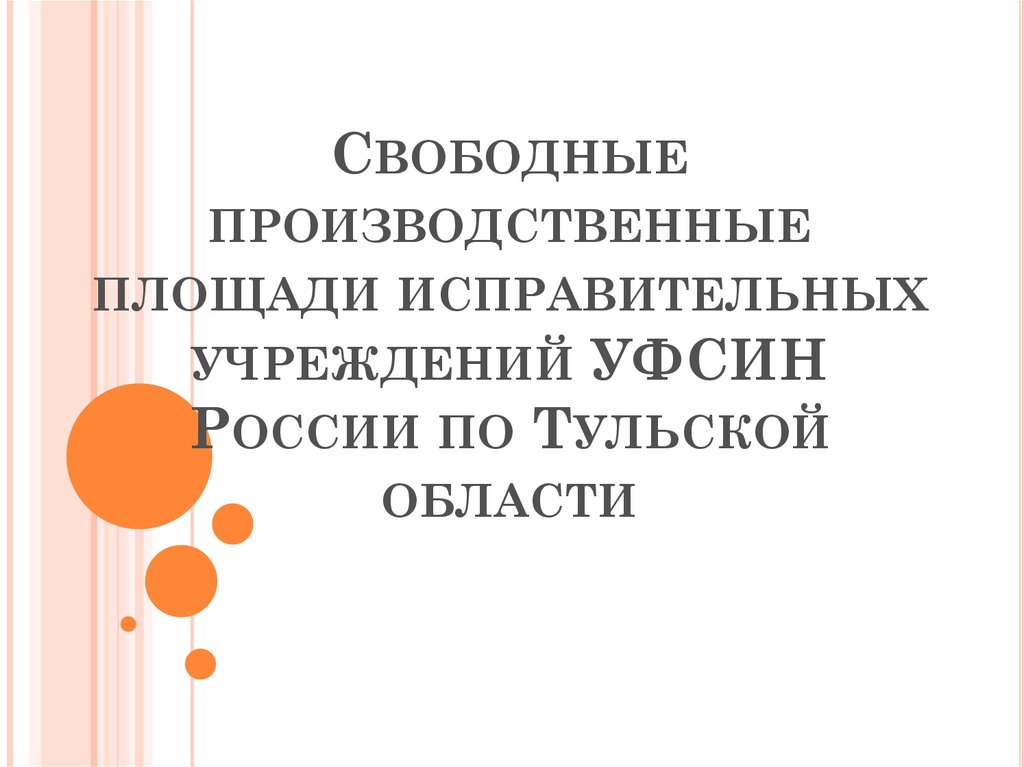 1. Свободные производственные площади исправительных учреждений УФСИН России по Тульской области