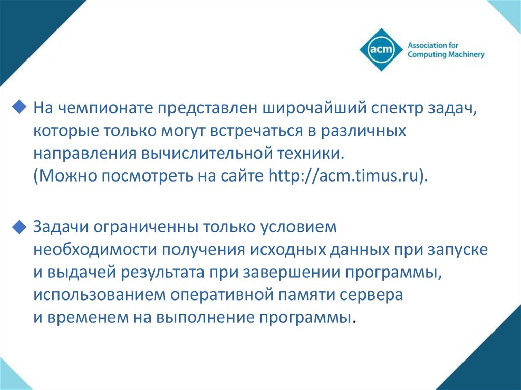 На чемпионате представлен широчайший спектр задач,которые только могут встречаться в различных