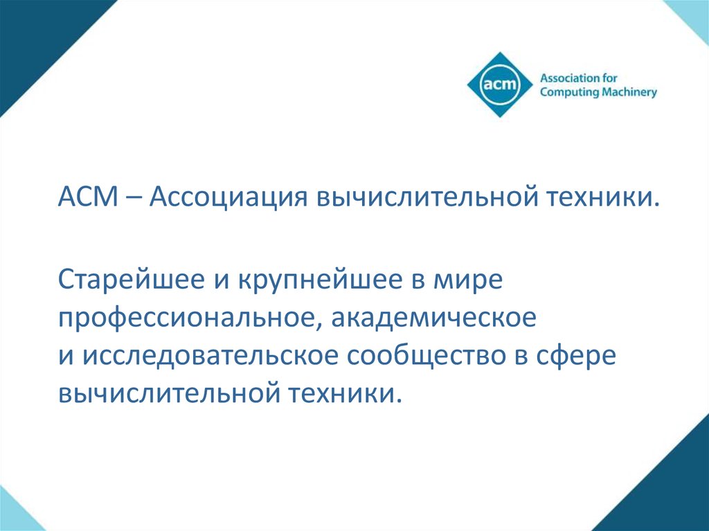 ACM – Ассоциация вычислительной техники.Старейшее и крупнейшее в мире