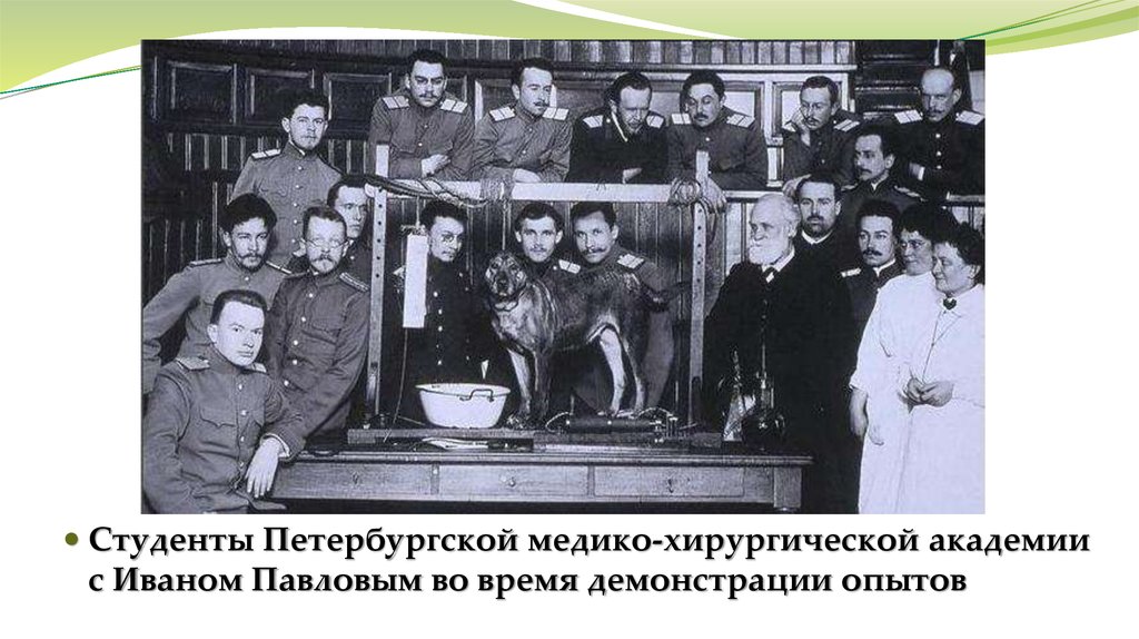 Студенты Петербургской медико-хирургической академиис Иваном Павловым во время демонстрации опытов