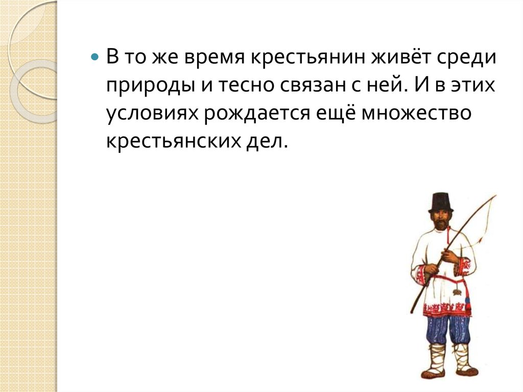 В то же время крестьянин живёт средиприроды и тесно связан с ней. И в этих