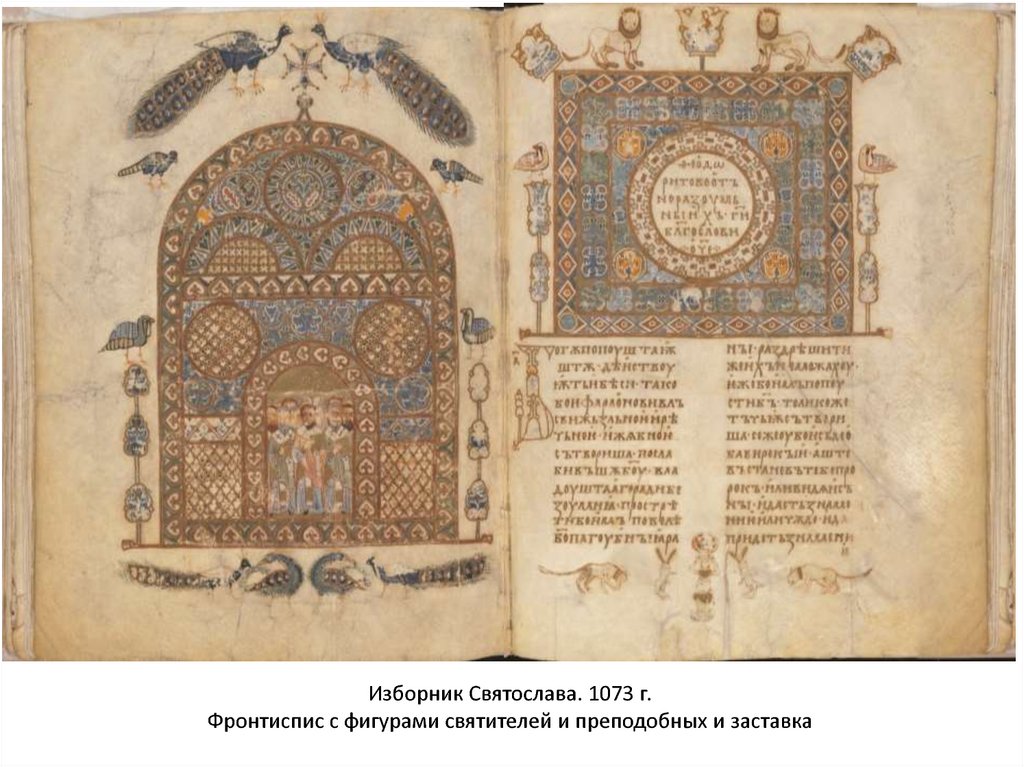 Изборник Святослава. 1073 г.Фронтиспис с фигурами святителей