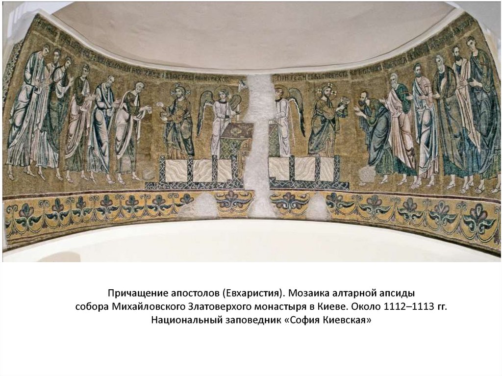 Причащение апостолов (Евхаристия). Мозаика алтарной апсидысобора Михайловского Златоверхого монастыря в Киеве. Около 1112–1113 гг.