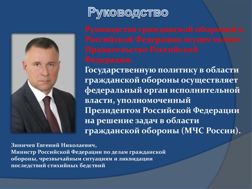 Руководство гражданской обороной вРоссийской Федерации осуществляет